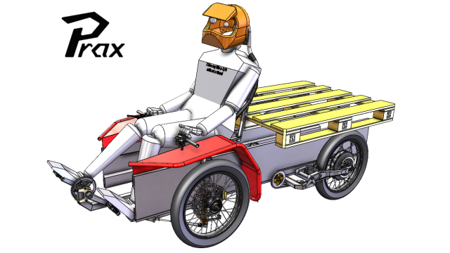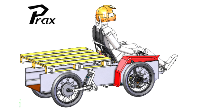 Classé en VAE (vélo à assistance électrique),et aussi robuste que le Baker-Prax, il lui emprunte les suspensions, les roues, le freinage et les trains roulants. Le châssis, de conception similaire sera plus court et la position de conduite plus haute et avancée. Cette configuration plus légère, garde la même capacité de charge, et favorise l'accès à bord pour monter et descendre. Elle pourra circuler sur les pistes cyclables. Grâce au gain de poids, un seul moteur pédalier type Bafang associé à une boite de vitesse Enviolo suffiront pour des utilisations dans des environnements non montagneux. Le projet démarrera quand le Baker-Prax sera homologué et en foction de la demande. N'hésitez pas à nous contacter pour manifester votre intérêt. (3d du projet, non definitif)